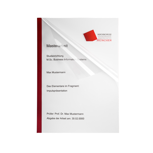 Wählen Sie aus den folgenden Varianten Ihr ganz persönliches Design aus. Anschließend konfigurieren Sie die Farben, das Deckblatt, die Papierstärke und vieles mehr. Wenn Sie mit Ihrem Entwurf zufrieden sind, laden Sie Ihre Facharbeit (PDF-Format) und das Deckblatt (MS-Word™-Format) hoch.